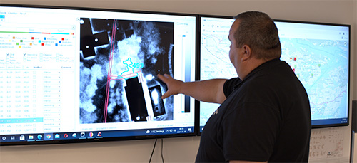 En typisk arbetsdag börjar med att Robert och kollegorna går igenom morgonens larmrapport från de 1200 enheterna ute på nätet. Om det finns ett larm om en misstänkt läcka går de igenom sensordatan och jämför med flygtermograferingskartan över platsen.
