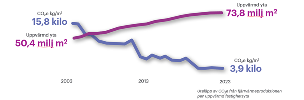 Stockholm har vuxit snabbt och vi värmer idag betydligt större ytor samtidigt som vi dramatiskt minskat utsläppen från vår verksamhet. Detta har varit möjligt genom att vi har fasat ut fossila bränslen samtidigt som fjärrvärmen används allt mer effektivt i privata och offentliga verksamhet.