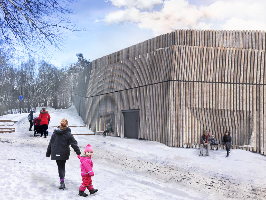 I en ny huvudledning till Nacka ingår en ny pumpstation i Hammarbybacken. (Bild: Urban Design)